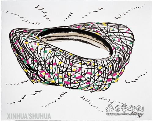 一幅浓烈一幅淡雅 吴冠中携《鸟巢》喜迎奥运