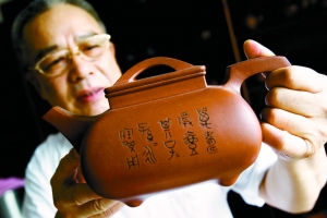 周锦春告诉记者,紫砂壶的雕刻装饰艺术集诗词、书画、文学、篆刻、金石艺术于壶体。铭、镌的内容丰富,不仅有与茶文化、陶文化相切的词句,还有哲学、伦理、道德、知识性的内容,赋予了紫砂壶丰厚的文化内涵。在赏壶的过程中,感受中国传统文化神韵,美妙至极。