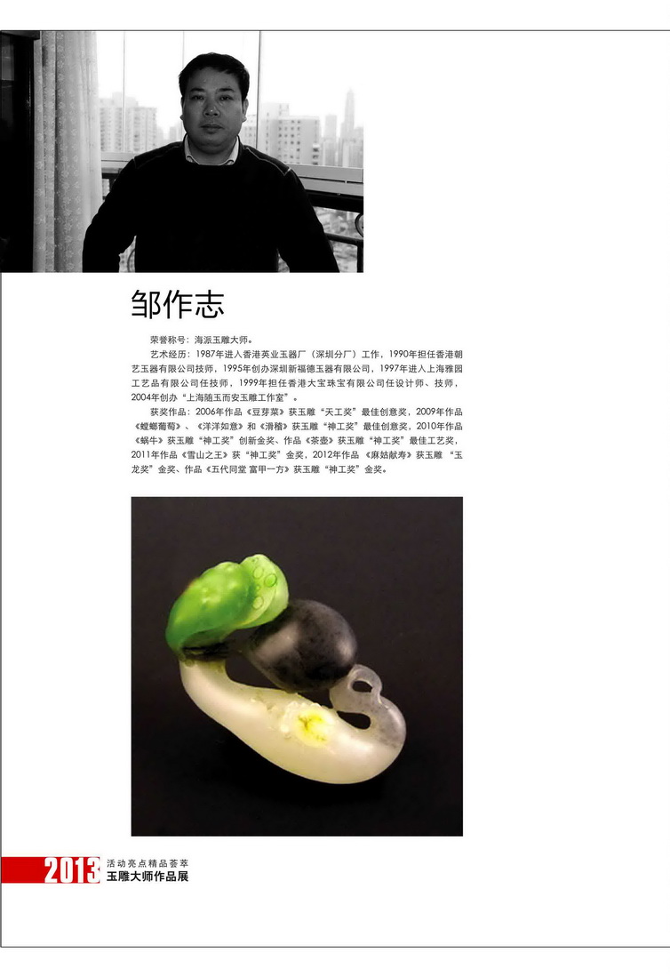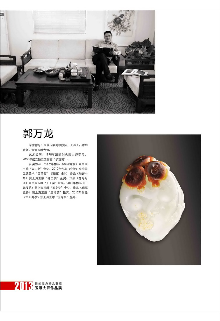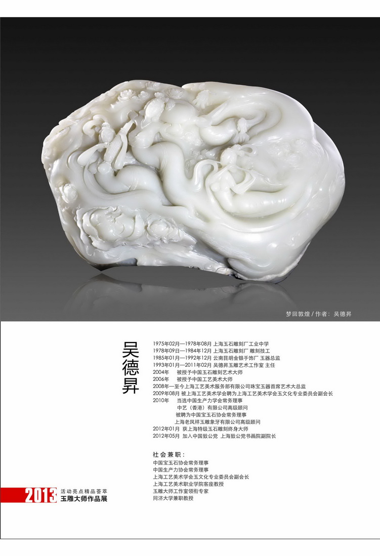 2013年是艺术品市场持续繁荣的一年,当代高端玉雕艺术精品也进入艺术品市场并逐步形成一定的价值增长体系,成为艺术品市场炙手可热的投资品种。原料的稀缺性为前提,厚重的玉石文化为基础,广泛的受众是条件,致使优秀的玉雕艺术品稳坐“保值”高地。