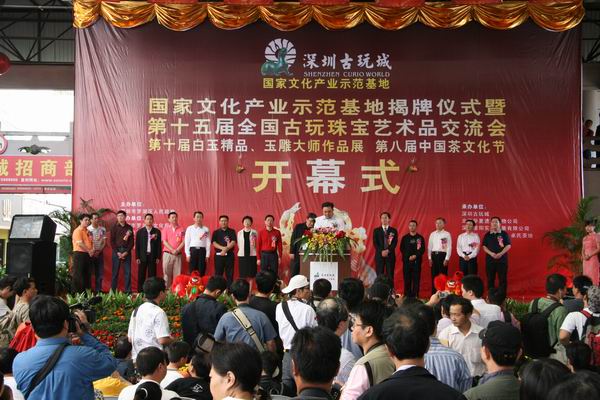 各位来宾、女士们,先生们,朋友们: 大家好! 很高兴出席今天在深圳古玩城举办的国家级文化产业示范基地揭牌仪式暨第十五届全国古玩珠宝艺术品交流会! 首先,请允许我向荣获第三批“国家文化产业示范基地”,并成功承办第十五届全国古玩珠宝艺术品交流会的深圳古玩城表示热烈的祝贺! 深圳古玩城获得第三批国家文化产业示范基地,是我市继深圳雅昌公司、华侨城、大芬油画村之后的又一个国家级文化产业示范基地。深圳古玩城的成功,有效提升了深圳的文化软实力。这是深圳的荣誉,更是深圳践行“文化立市”战略、发展文化产业结出的又一丰硕成果! 深圳古玩城自2002年起步,短短几年间就发展成为第三批国家文化产业示范基地,可以说是深圳日新月异、飞速发展的缩影。 深圳古玩城的成长历程,反映了深圳古玩城在传承文化使命、弘扬祖国优秀传统文化过程中不骄不躁、脚踏实地的稳健作风,也体现了开拓创新、务实高效的深圳精神。 深圳已有很好的文化产业基础,深圳的文化事业欣欣向荣。在深圳文化产业繁荣的背后,正是很多像深圳古玩城这样具有文化使命感,具有文化自觉意识的建设者勇往直前、努力拼搏的结果。 当前,深圳的发展正处在新的历史起点上,续写特区新的文化篇章,再创深圳新的辉煌,是每一个深圳人的责任与义务! 让我们以改革开放三十周年为契机,进一步解放思想,科学发展,抓住机遇,乘势而上,继续繁荣文化产业,建设创新型的和谐文化,不断开创深圳文化产业工作的新局面! 最后,预祝第十五届全国古玩珠宝艺术品交流会圆满成功! 谢谢大家! |